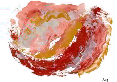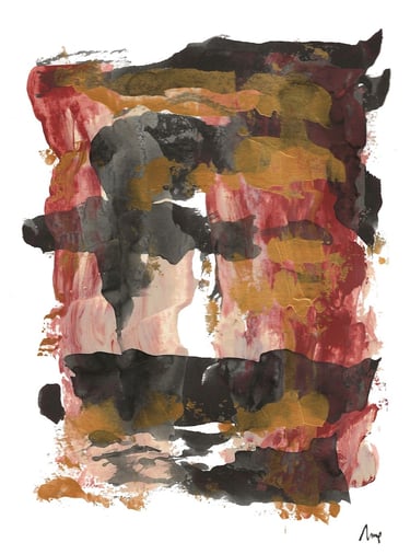 Burnt sienna, parchment, iridescent precious gold and pearl white acrylic paint are used in this collection.