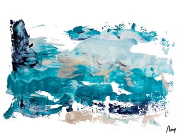 Turquoise blue, payne's grey, and pearly acrylic paint are used in this collection.